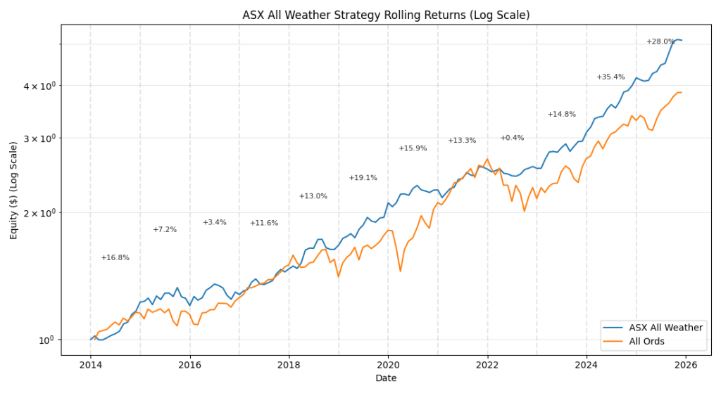 The ASX All Weather is a low-effort, low-volatility strategy offering minimal drawdowns and diversification through ETFs.