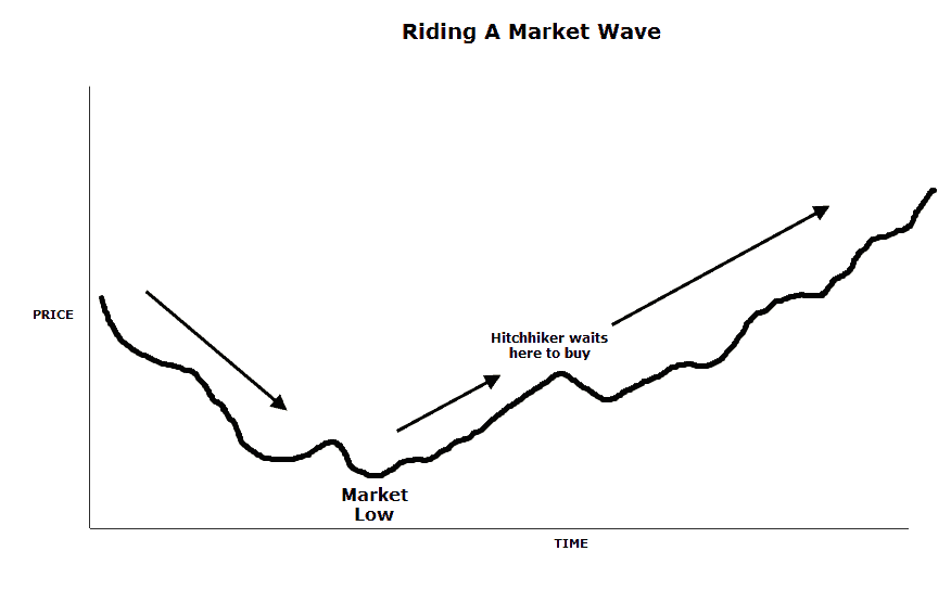 The easiest analogy I can come up with for trend following is that it’s like being a hitchhiker. We’re not predicting the market, we’re not analysing shares, we’re not using any fundamental analysis. At the end of the day any kind of trading, whether you’re a fundamental investor, value investor, or whatever; the profit is made from price movement. Price has to move from A to B in order to generate a profit. That’s the bottom line. It doesn’t matter how it gets there, what drives it, but in order to turn a profit, price has to go up.